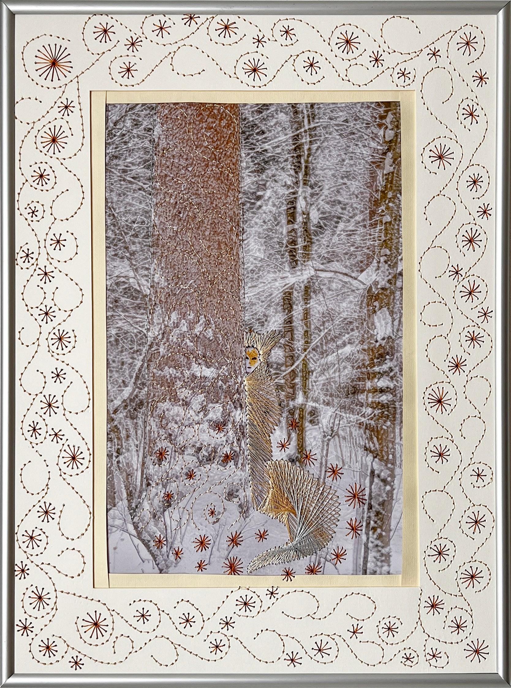 При создании своих героев я использовала вышивку, рисунок красками и свет лампы, которая подсвечивает проколы в бумаге.