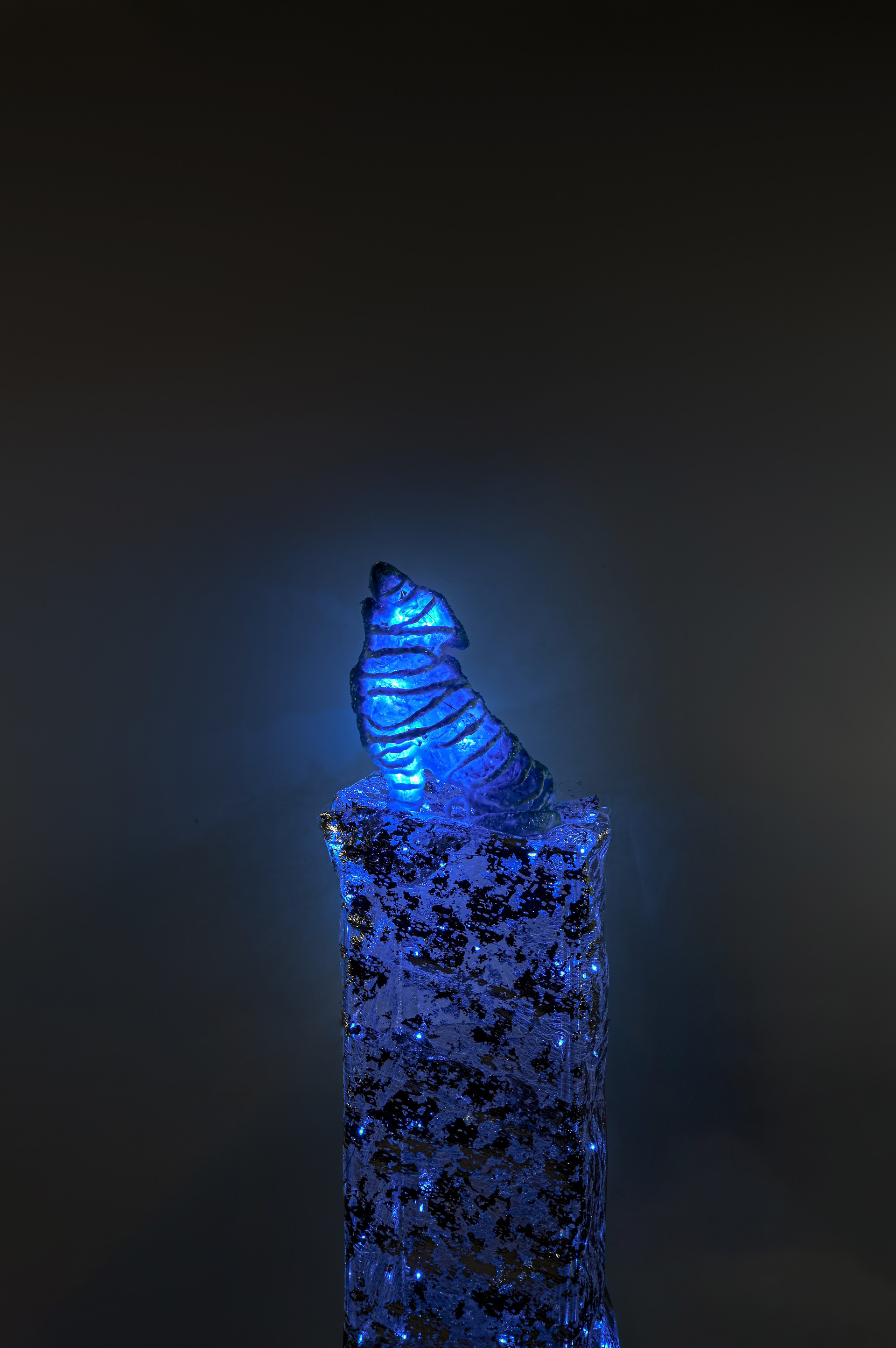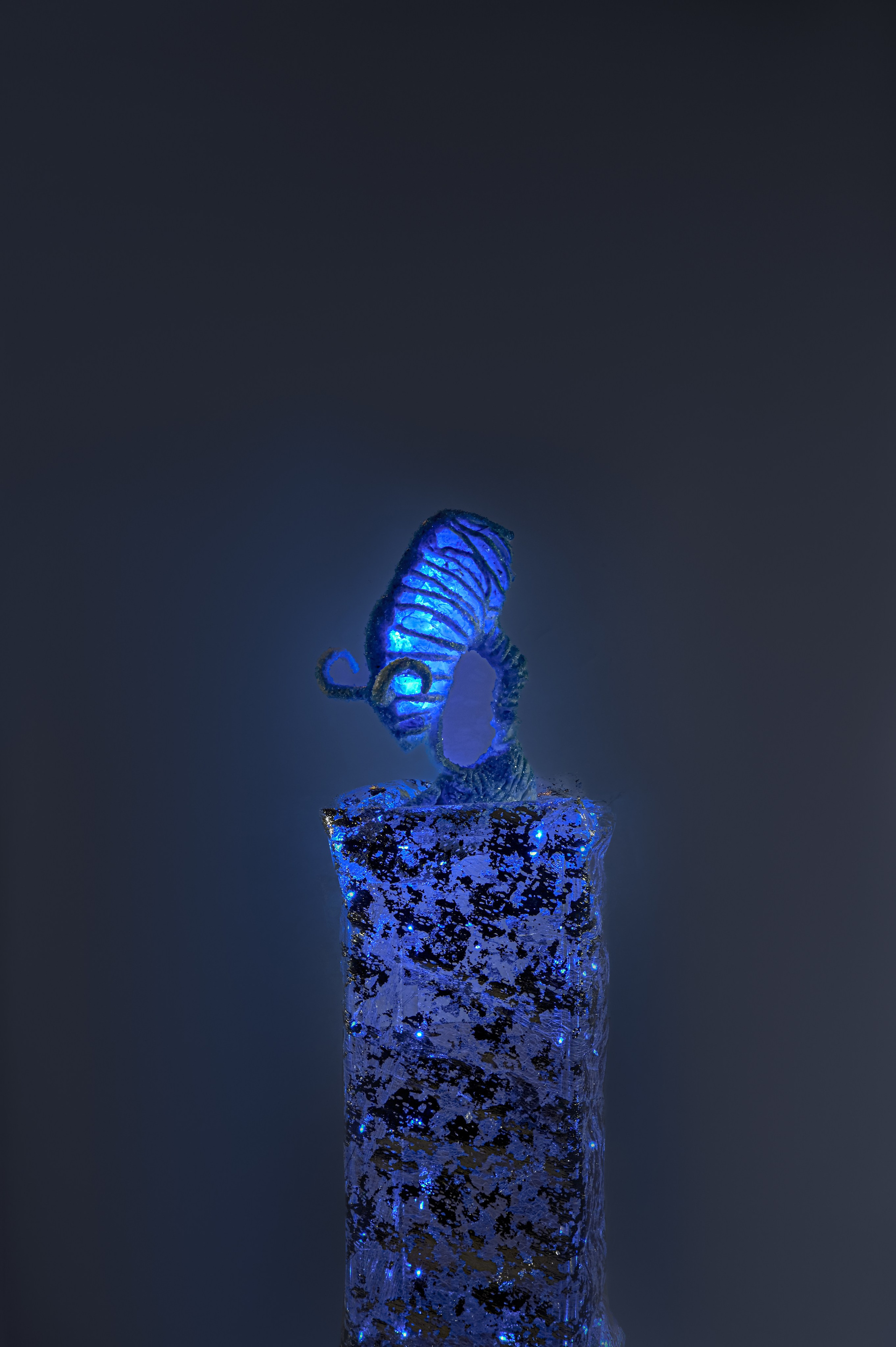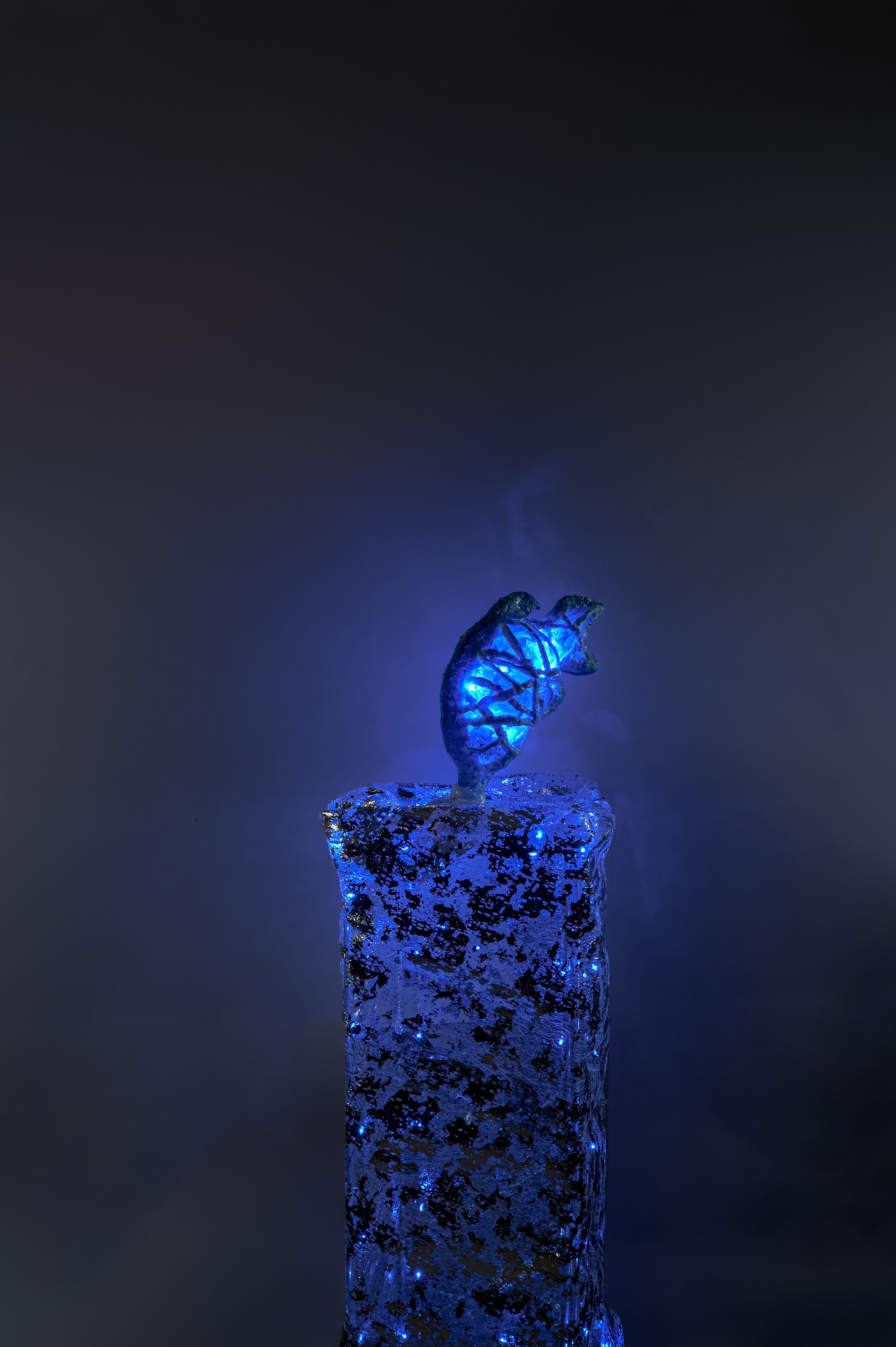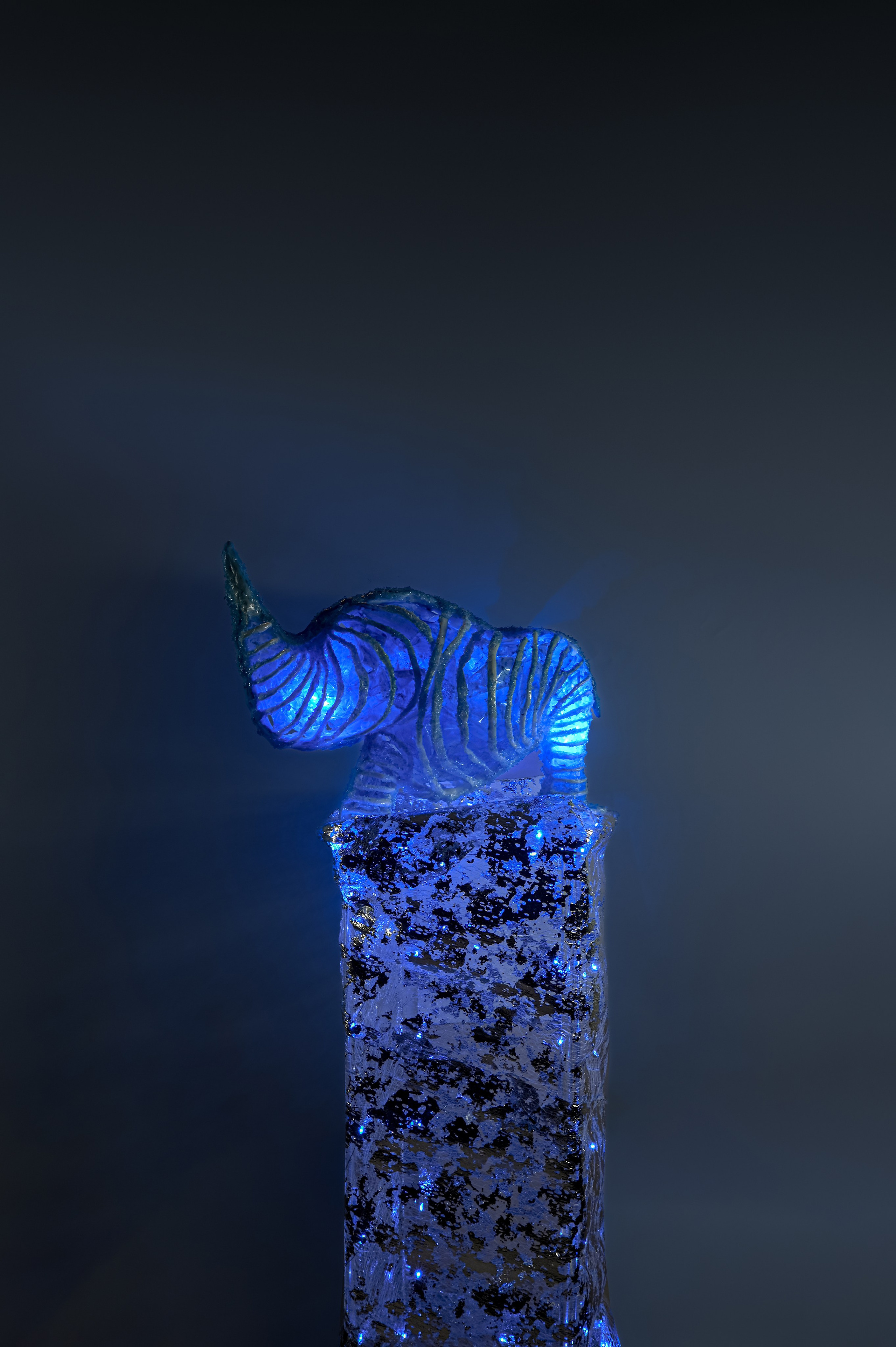 Проект «Призраки» 2024 - 2025гг. Китайский речной дельфин - 2017г. размер : стойка 60 см, фигура 25 см на 20 см. Пластик, люминесцентная акриловая краска, полиэтилен, стеклянная крошка, эпоксидная смола. В последние несколько десятилетий тема загрязнения окружающей среды и изменения климата получила широкую огласку. И тревога по поводу вымирания биологических видов не является надуманной.Но человек уже давно привык к таким новостям.Поэтому в своем проекте я не буду углубляться в детали этой проблемы. Моя цель – показать исчезнувшие виды животных, которые мы потеряли в последнее время. Это «призраки» из пластика и полиэтилена, хотя не так давно они были сильными, дикими и свободными животными. К каждой работе дана подпись с указанием вида животного и официального года его исчезновения.